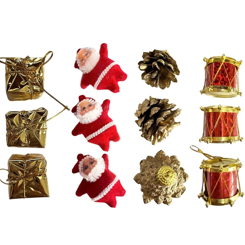 • Conteúdo: pendentes sortidos de laços/sinos/Papai Noel/tambores/caixas-presente/pinhas/anjos.