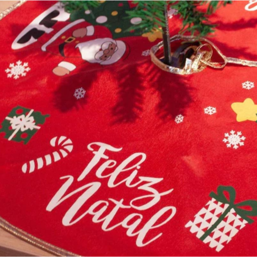 🎁 Imagine suas fotos de Natal com um cenário impecável e aconchegante. A Saia de Veludo transforma sua sala em instantes, elevando o clima festivo e destacando cada detalhe da sua árvore.
