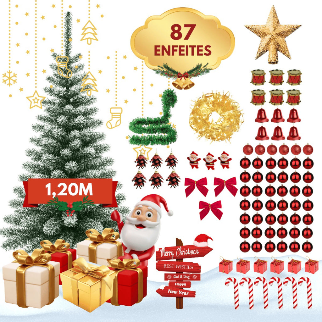 Transforme seu Natal com a Árvore 120cm + 87 Enfeites Prontos para Decorar