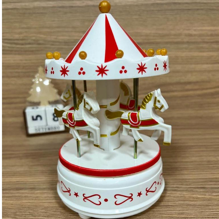 ✨ Simples de usar: basta girar o topo para dar corda e a caixinha toca música — sem pilhas, sem complicação. Feito em plástico resistente e no tamanho compacto 17x11 cm, ele cabe em qualquer cantinho e vira o destaque da decoração.