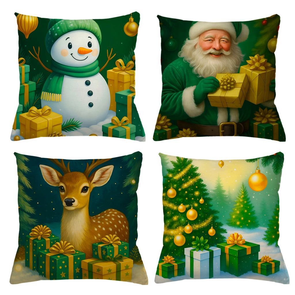 🎄 Seu sofá merece entrar no clima! Com este Kit 4 Capas de Almofadas Natalinas 45x45, você transforma a sala em minutos, sem gastar com almofadas novas. As estampas clássicas combinam entre si e criam uma decoração acolhedora que encanta crianças e adultos.